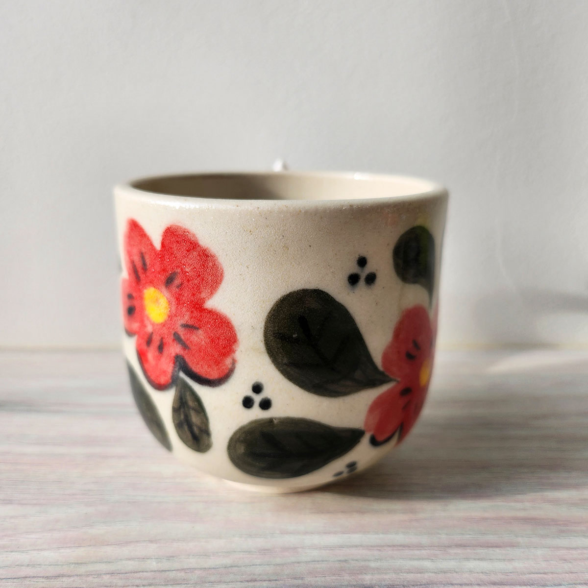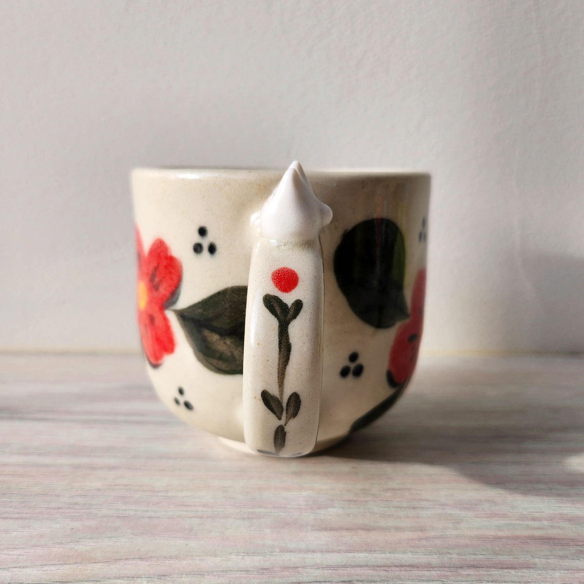 Medidas aproximadas: 8 cm (altura) x 8 cm (diâmetro) x 11 cm (diâmetro + alça) • Capacidade: 180 ml