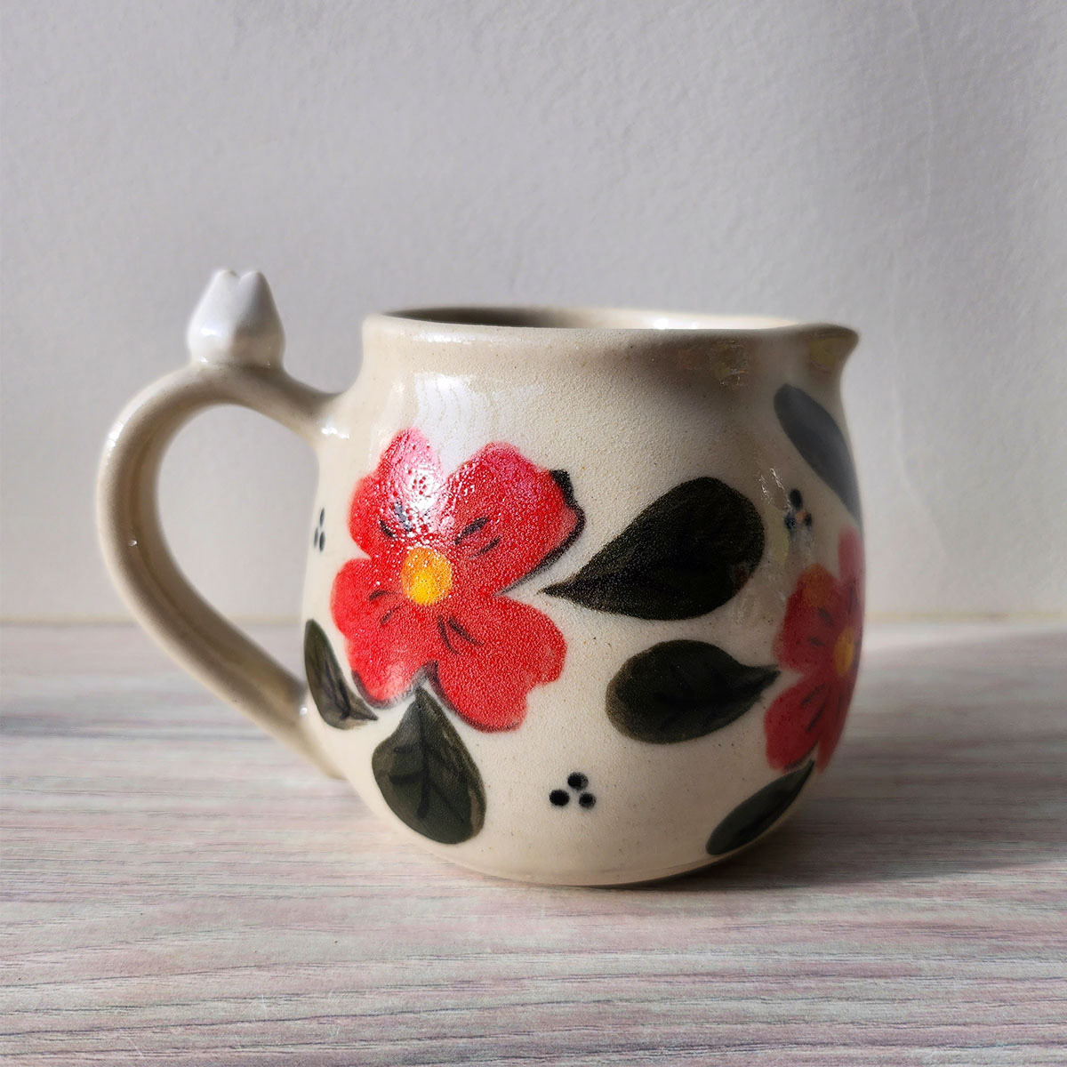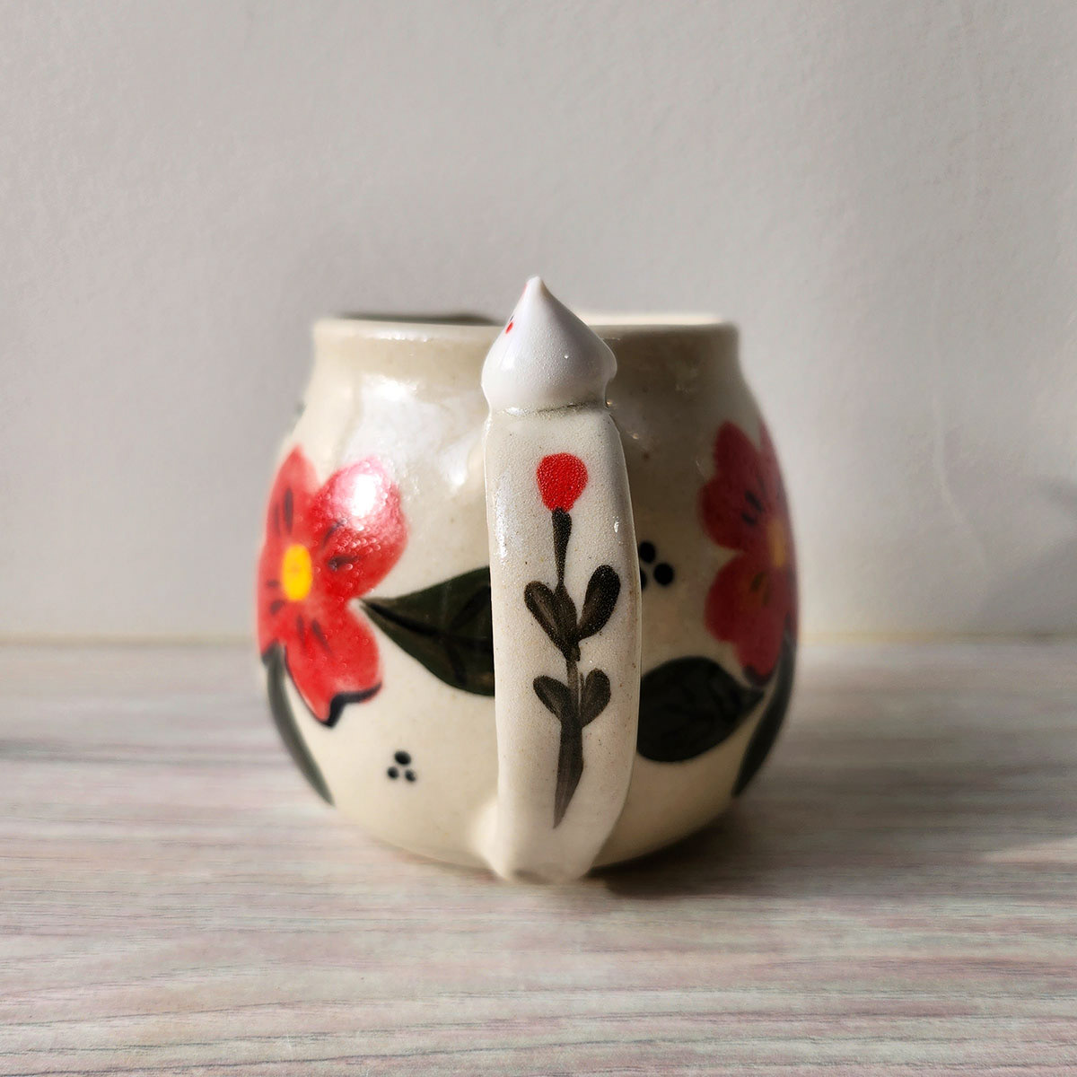 Medidas aproximadas: 8 cm (altura) x 7,5 cm (diâmetro) x 11 cm (diâmetro + alça) • Capacidade: 220 ml