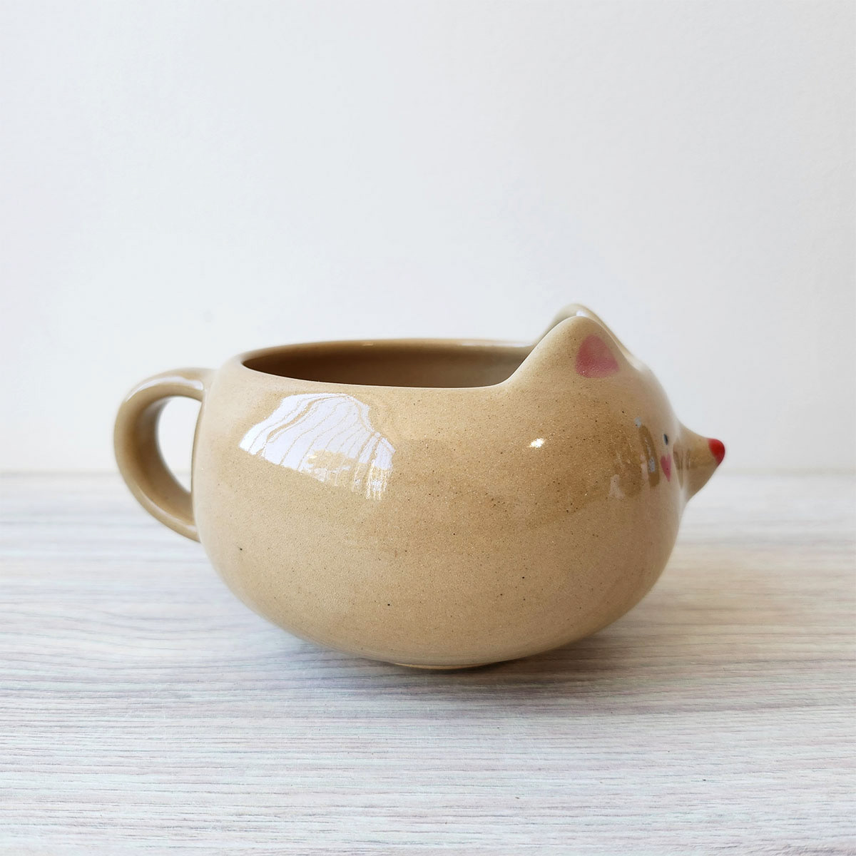 Medidas aproximadas: 7 cm (altura) x 10 cm (diâmetro) x 14 cm (diâmetro + alça) • Capacidade: 260 ml • Por que está no Bazar? Possui uma pequena rachadura no nariz.