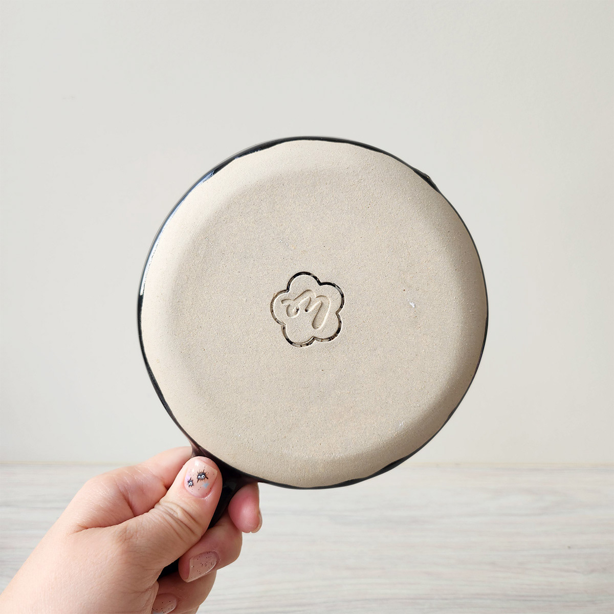 Medidas aproximadas: 3 cm (altura) x 13,5 cm (diâmetro) x 19,5 cm (diâmetro + alça)